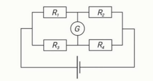 Задание 4. В изображённой на рисунке схеме известны сопротивления резисторов R₂ = 220 Ом, R₃ = 68 Ом, R₄ = 150 Ом и напряжение идеального источника U = 15 В. Гальванометр G показывает нуль (ток через него не течёт).